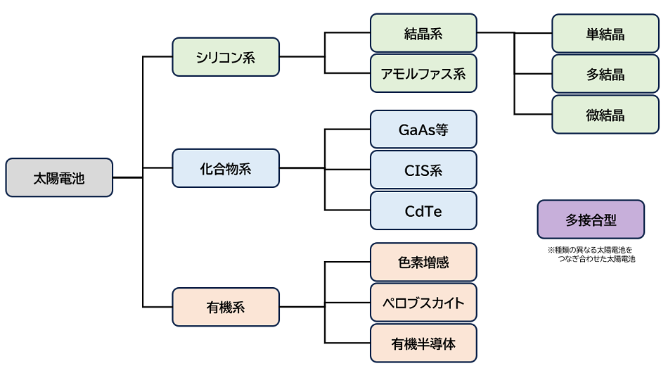 出典:産業技術総合研究所「主な太陽電池の材料による分類」よりJEMA作成
